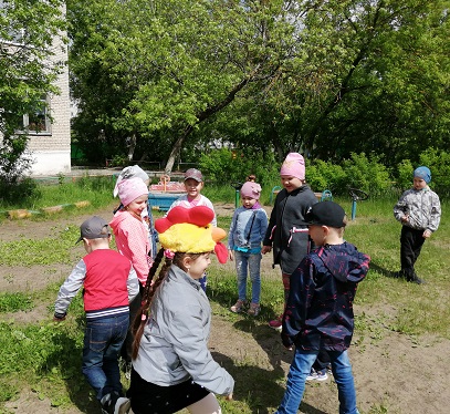 А во время прогулки поиграли в русскую народную игру "Петушок".