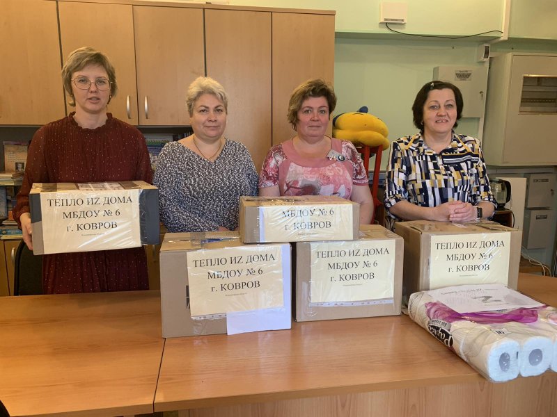 24 февраля 2022 года наш президент В.В. Путин объявил о начале специальной военной операции. И сегодня наш народ объединяется, чтобы оказать помощь и поддержку нашим солдатам, сражающимся за будущее нашей страны. Педагоги, родители и воспитанники МБДОУ №6 присоединились к народной благотворительной акции «ТЕПЛО иZ ДОМА», организованной Владимирской региональной общественной организацией участников боевых действий «ВОИН». Для военнослужащих и мобилизованных граждан участниками акции были собраны теплые вещи (носки, печатки), бытовая химия, предметы личной гигиены, хозяйственные и медицинские товары, не входящих в нормы вещевого обеспечения войсковых частей. Все собранные вещи переданы для отправки в пункт приёма на базе Дома культуры им. В.И. Ленина.