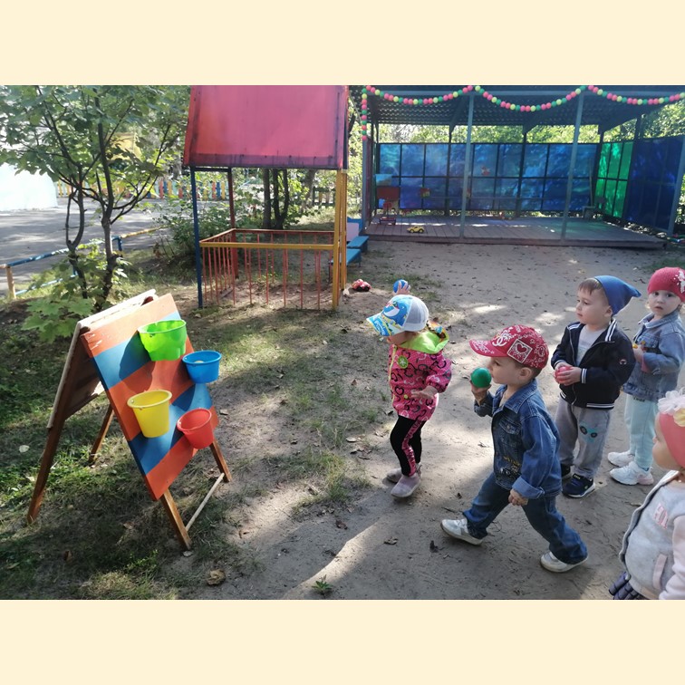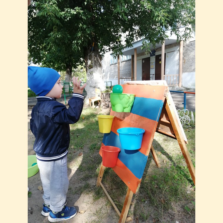Сегодня малыши группы №2 «Солнышко» поиграли в игру «Найди домик мячику», которую помог сделать Александр Константинович (дедушка Киры З.). А потом малыши придумали новую забаву «Попади в ведерко». Необычная игра подарила радость малышам.